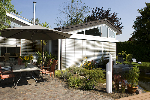 Außenraffstores geben nur so viel von Ihrer Privatsphäre preis, wie Sie es wollen. Der besondere Effekt dabei: Die Sichtverbindung nach draußen bleibt weitgehend erhalten.
